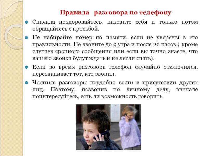 уверены в его правильности. Не звоните до 9 утра и после 22 часов ( кроме случаев срочного сообщения или если вы точно знаете, что вашего звонка будут ждать и не легли спать).