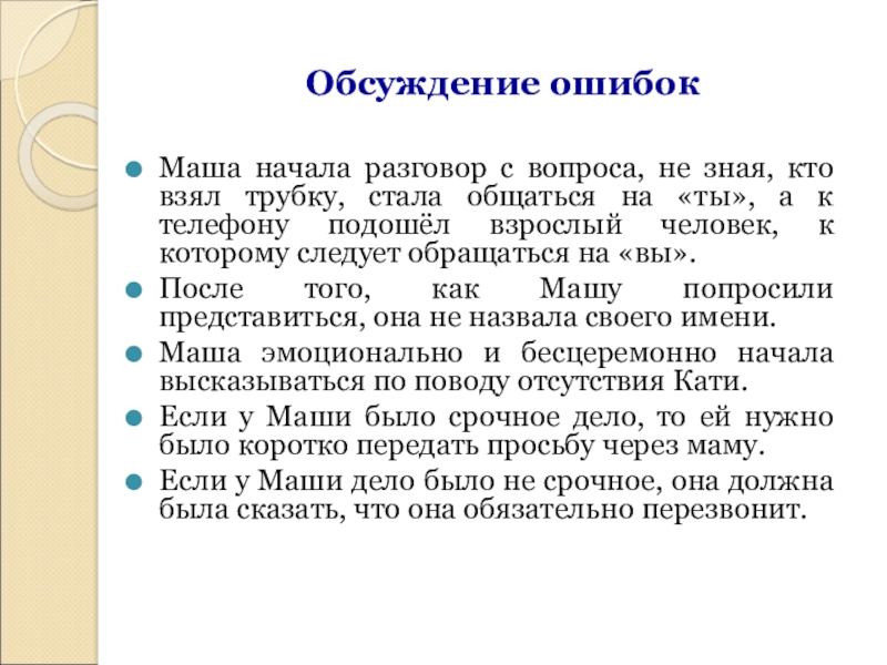 Если у Маши дело было не срочное, она должна была сказать, что она обязательно перезвонит.