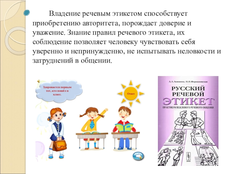 Слайд 4 Владение речевым этикетом способствует приобретению авторитета, порождает доверие и