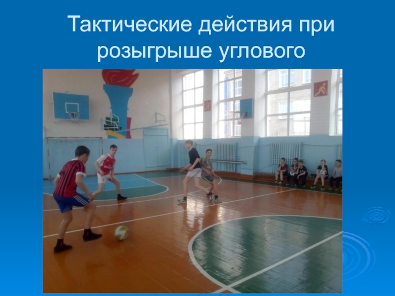 Слайд 14Тактические действия при розыгрыше углового