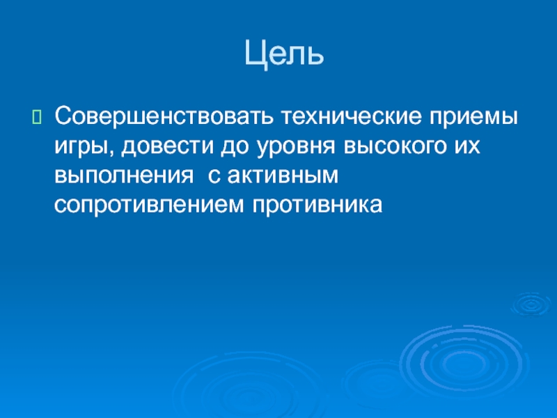ЦельСовершенствовать технические приемы игры, довести до уровня высокого их выполнения с активным сопротивлением противника