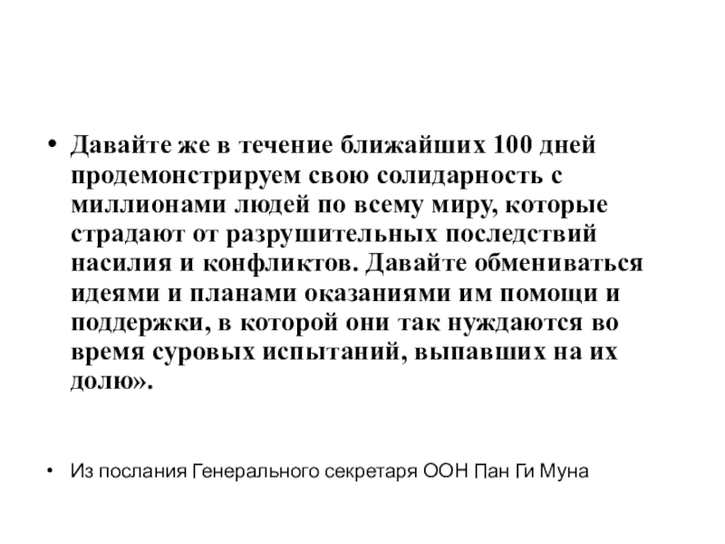 Слайд 27Давайте же в течение ближайших 100 дней продемонстрируем свою солидарность