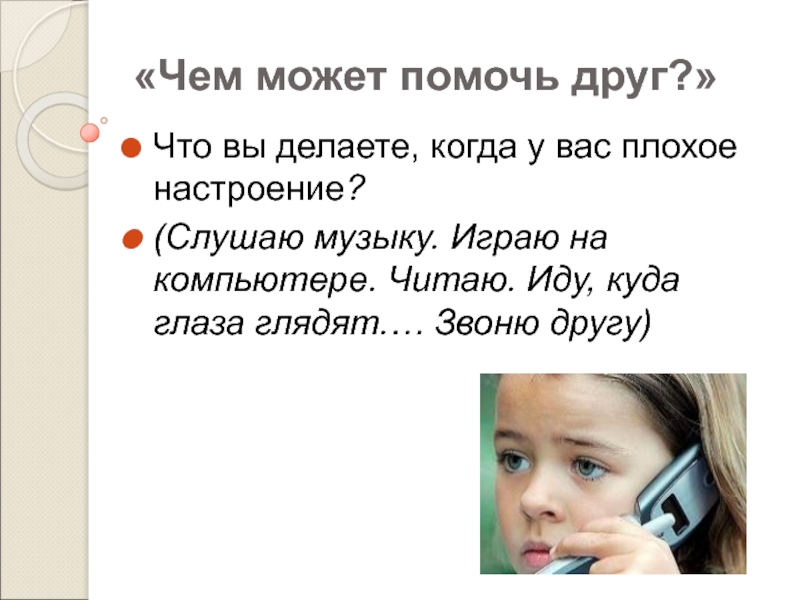 Слайд 7Чего бы ты ожидал от друга, когда у тебя плохое