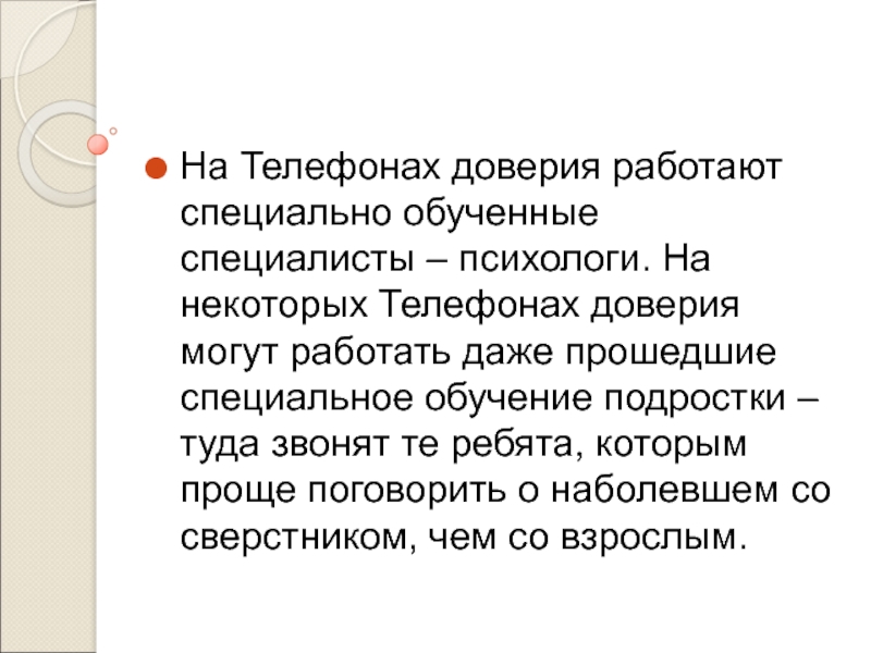 На Телефонах доверия работают специально обученные специалисты – психологи. На
