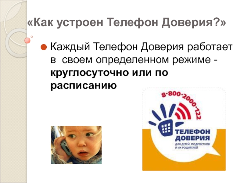 Поэтому вскоре вслед за взрослыми Телефонами доверия, стали организовывать Телефоны доверия для детей.