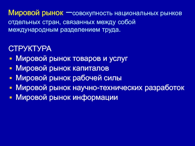 Слайд 18Мировой рынок –совокупность национальных рынков отдельных стран, связанных между собой