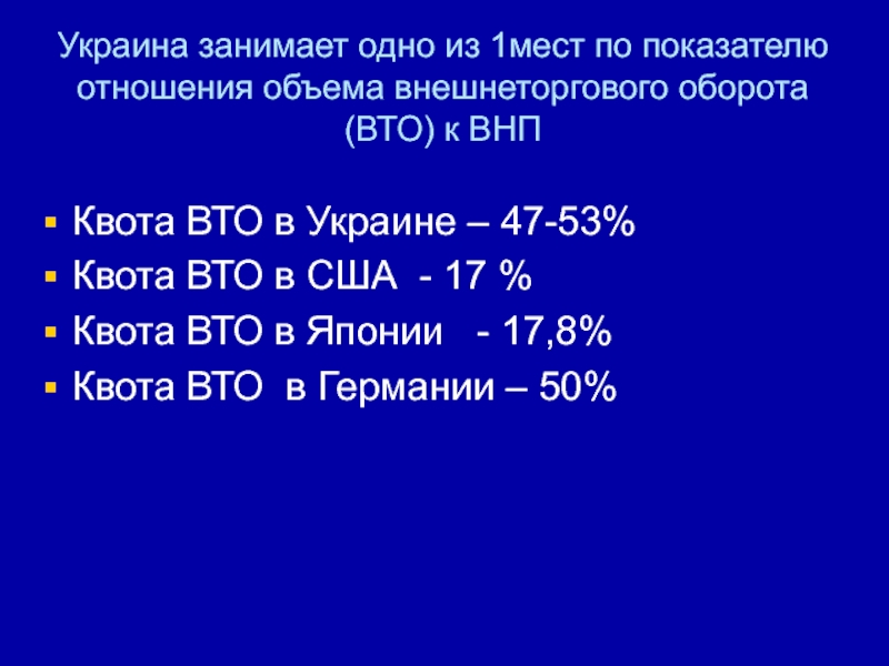 Слайд 24Украина занимает одно из 1мест по показателю отношения объема внешнеторгового