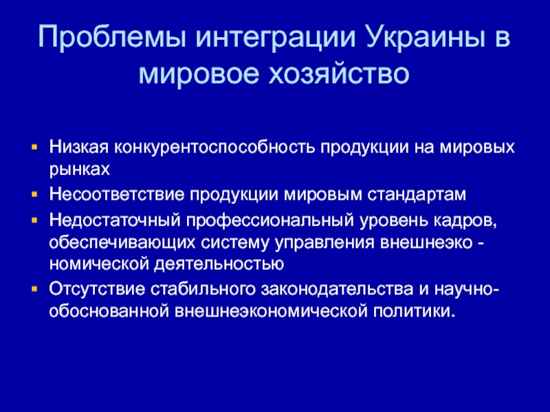 Слайд 25Проблемы интеграции Украины в мировое хозяйство