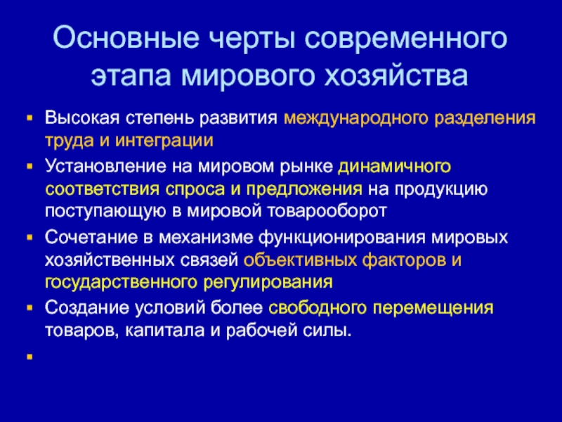 Слайд 7Основные черты современного этапа мирового хозяйства