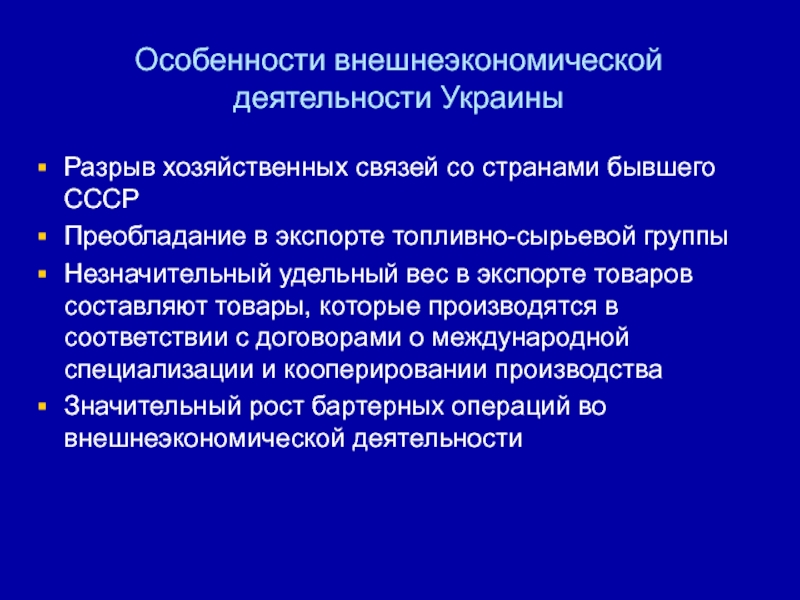 Слайд 23Особенности внешнеэкономической деятельности Украины