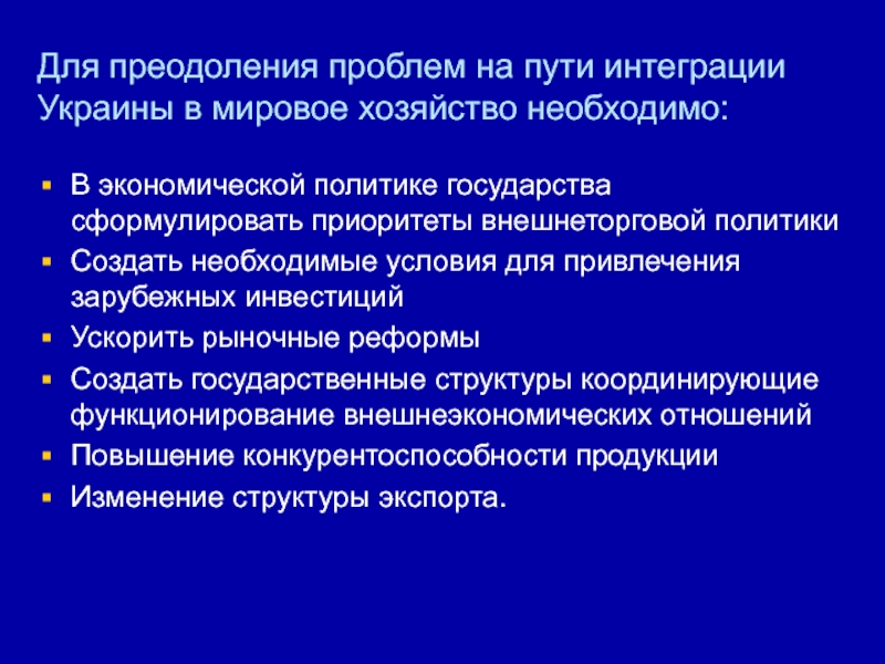 Слайд 28Для преодоления проблем на пути интеграции Украины в мировое хозяйство