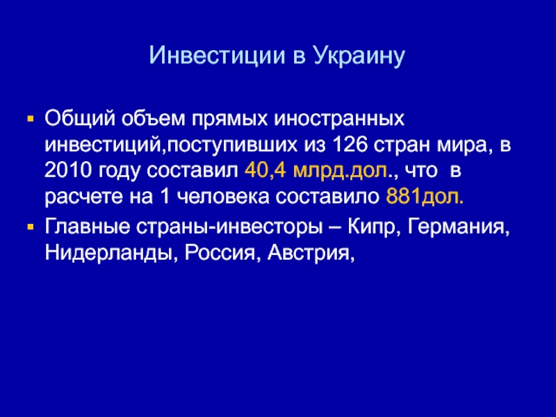 Главные страны-инвесторы – Кипр, Германия, Нидерланды, Россия, Австрия,