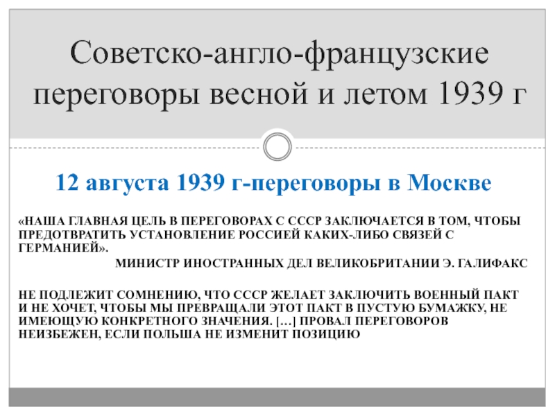 Цель СССР – стремление к союзу с демократическими странами с целью изоляции Германии, Италии и Японии