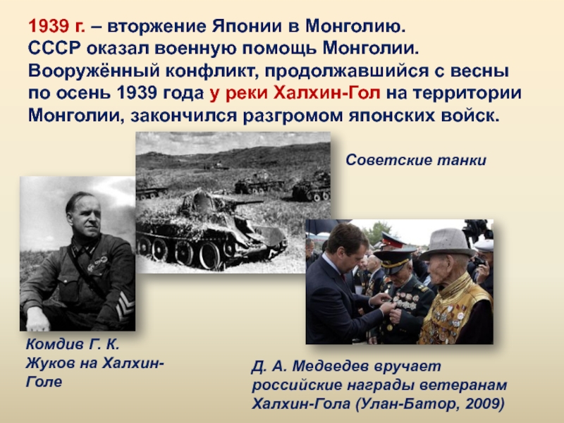 Д. А. Медведев вручает российские награды ветеранам Халхин-Гола (Улан-Батор, 2009)