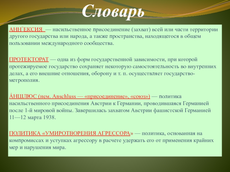 1938 г. – Германия аннексировала Судетскую область от Чехословакии