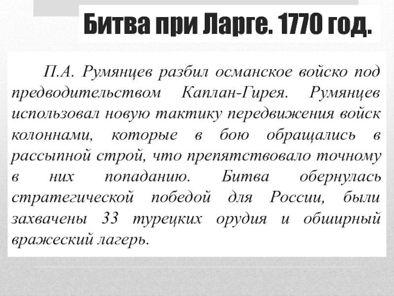 османское войско под предводительством Каплан-Гирея. Румянцев использовал новую тактику передвижения