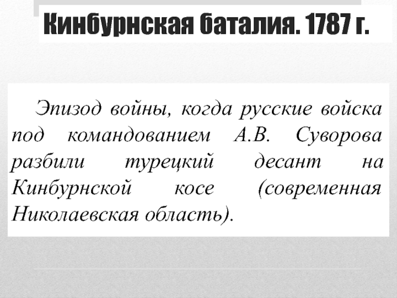 под командованием А.В. Суворова разбили турецкий десант на Кинбурнской косе