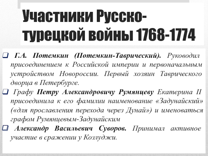 Слайд 15Участники Русско-турецкой войны 1768-1774