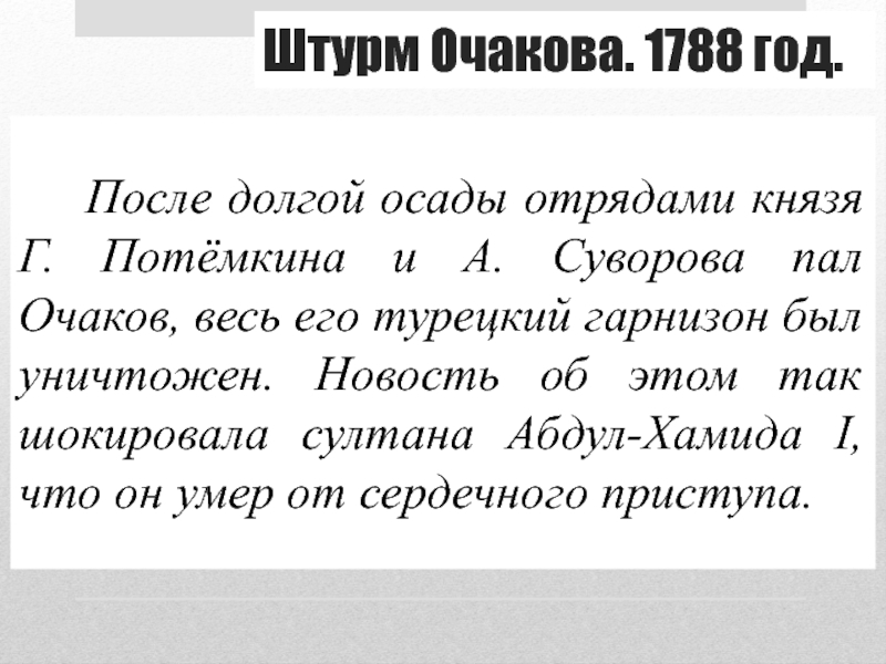 турецкий гарнизон был уничтожен. Новость об этом так шокировала султана Абдул-Хамида I, что он умер от сердечного приступа.