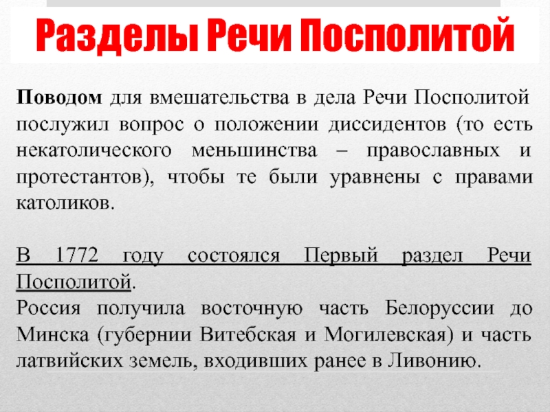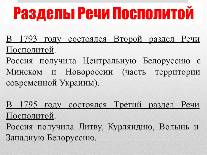 Разделы Речи Посполитой – раздел территории польско-литовского государства