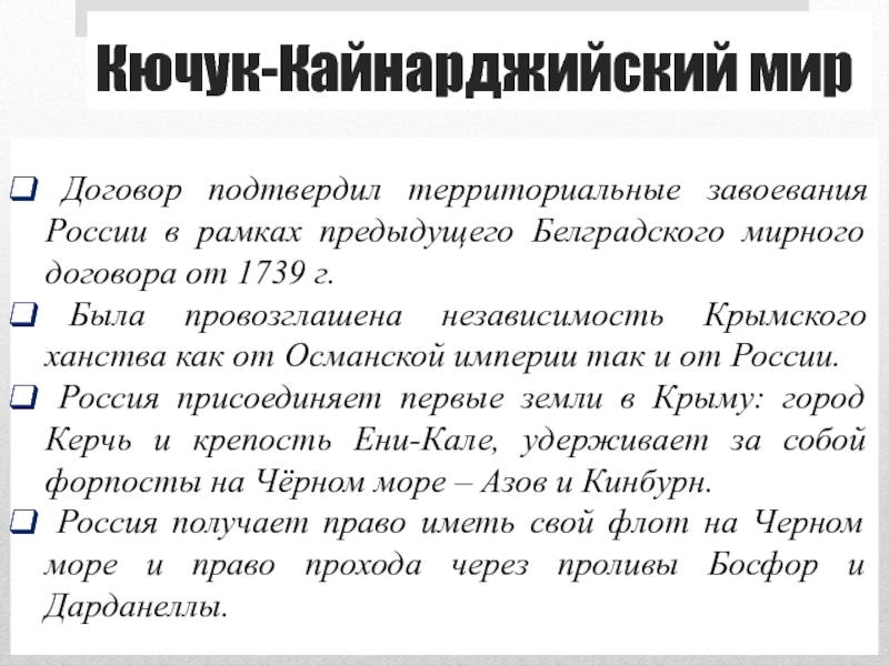 Слайд 14 Договор подтвердил территориальные завоевания России в рамках предыдущего Белградского
