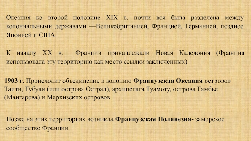 Позже на этих территориях возникла Французская Полинезия- заморское сообщество Франции