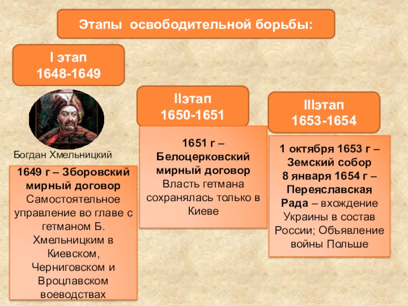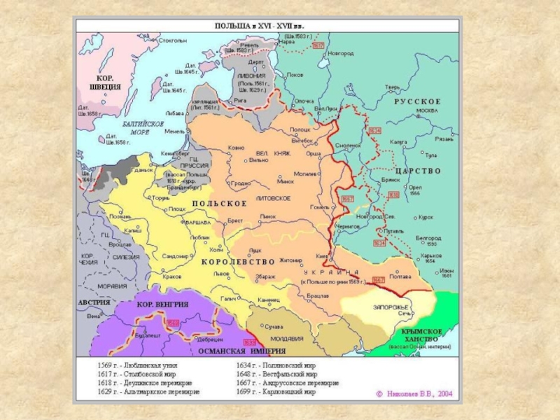 8 января 1654 г – Переяславская Рада – вхождение Украины в состав России; Объявление войны Польше