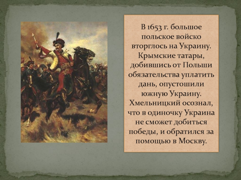 Слайд 14В 1653 г. большое польское войско вторглось на Украину. Крымские