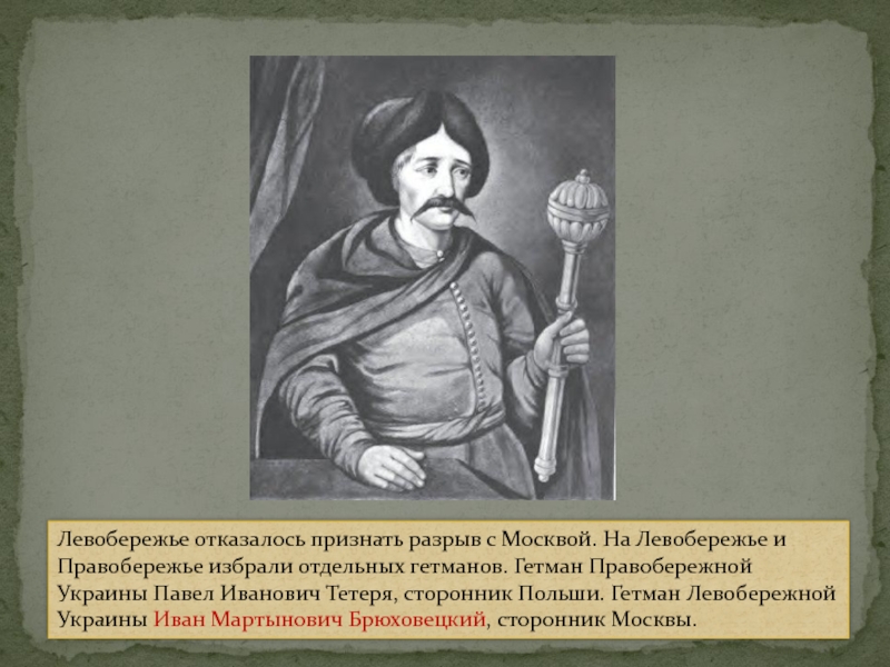 Слайд 23Левобережье отказалось признать разрыв с Москвой. На Левобережье и Правобережье