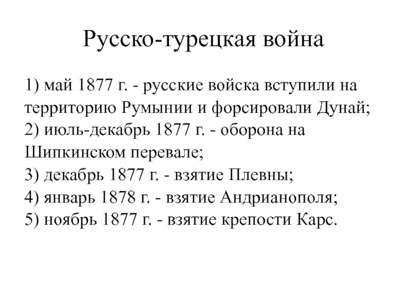 3) 1877 г. - Россия объявила войну Османской империи.