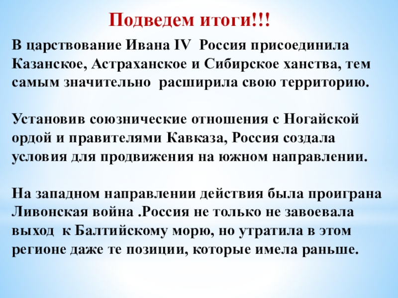 2.Россия теряла все свои приобретения в Ливонии и на востоке Литвы, большую часть побережья Финского залива.