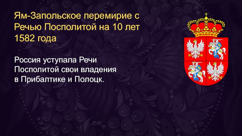 Слайд 15Плюсское перемирие со Швецией на 10 лет