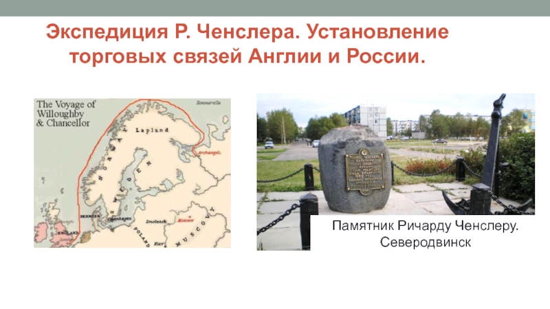 Слайд 3Экспедиция Р. Ченслера. Установление торговых связей Англии и России.