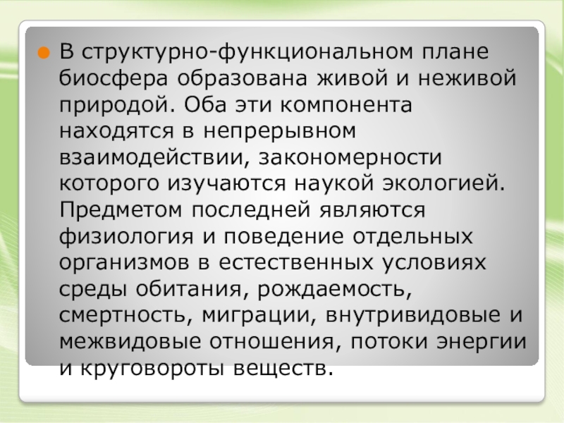 Слайд 5В структурно-функциональном плане биосфера образована живой и неживой природой. Оба
