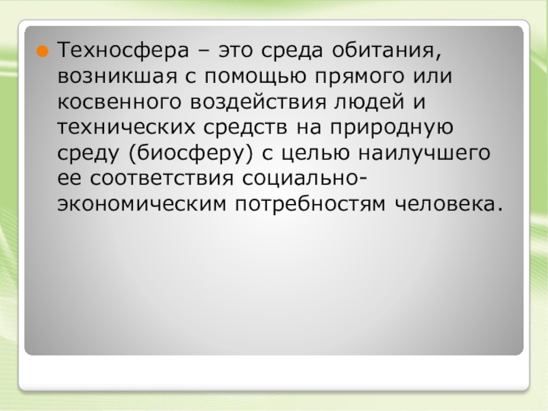 Слайд 8Техносфера – это среда обитания, возникшая с помощью прямого или
