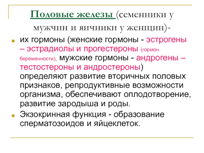 Слайд 35Половые железы (семенники у мужчин и яичники у женщин)-