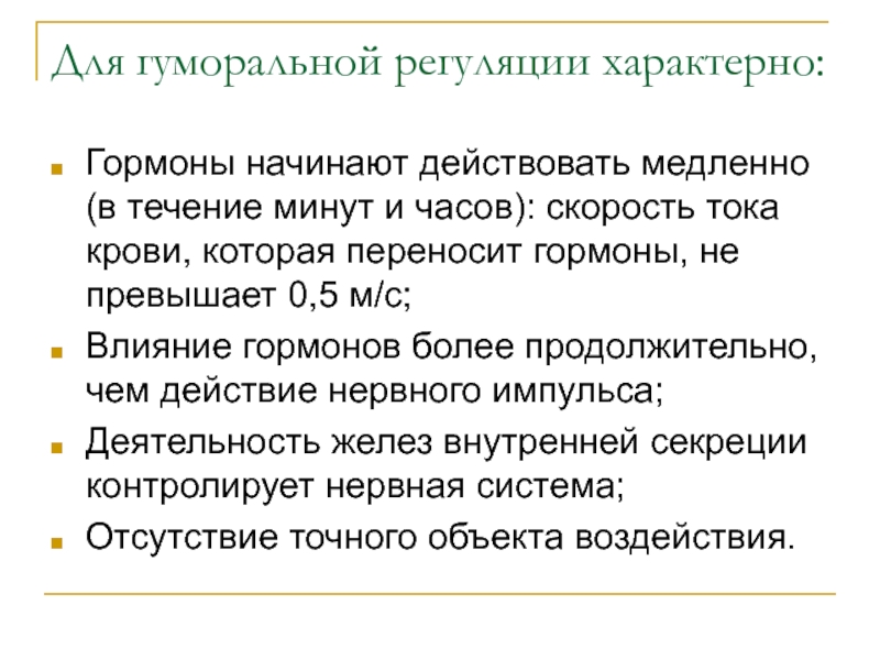 Слайд 17Для гуморальной регуляции характерно: