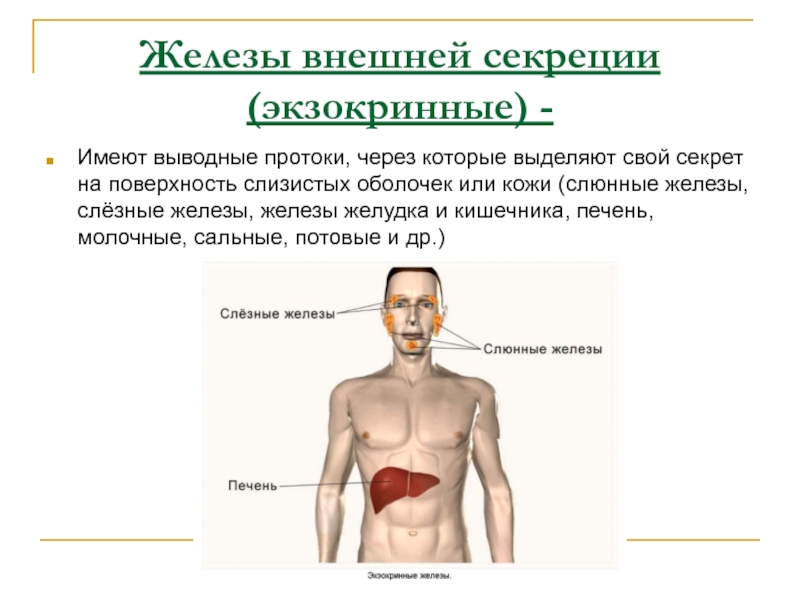 Слайд 3Железы внешней секреции (экзокринные) -