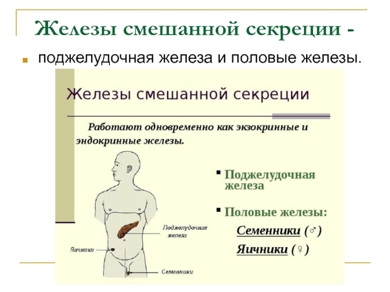 Слайд 32Железы смешанной секреции -