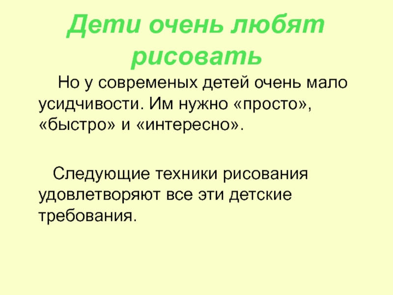 Дети очень любят рисовать    Но у современых детей очень мало усидчивости. Им нужно «просто»,