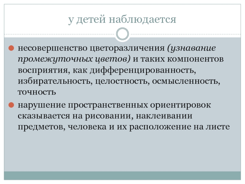компонентов восприятия, как дифференцированность, избирательность, целостность, осмысленность, точность