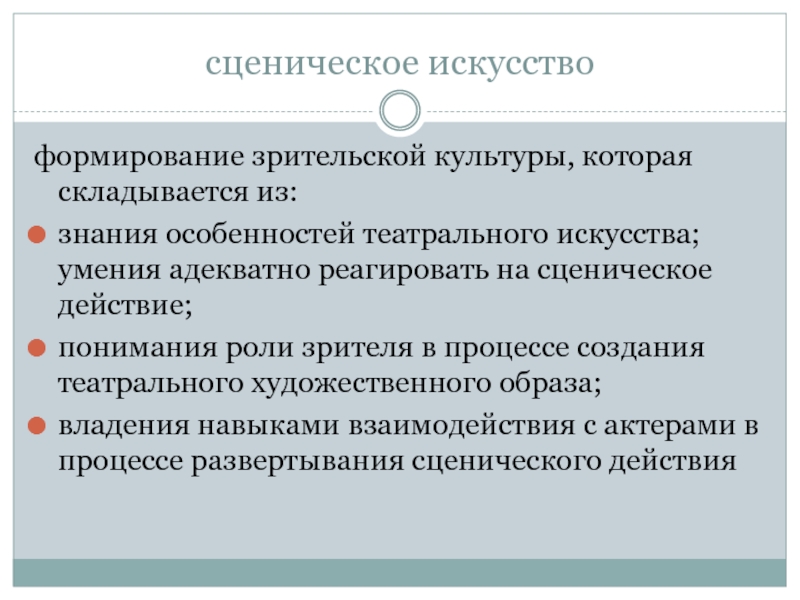 театрального искусства; умения адекватно реагировать на сценическое действие;