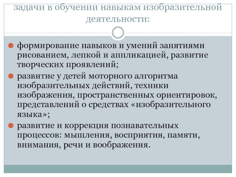 Слайд 28задачи в обучении навыкам изобразительной деятельности: