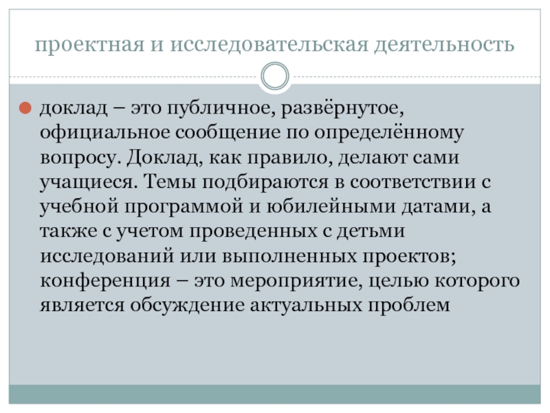 по определённому вопросу. Доклад, как правило, делают сами учащиеся. Темы