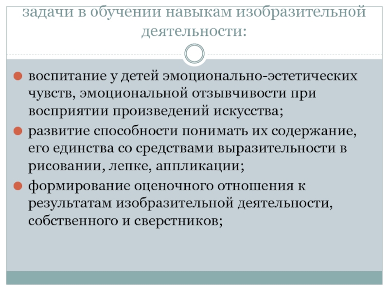 Слайд 27задачи в обучении навыкам изобразительной деятельности: