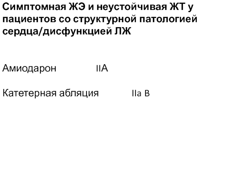 • Для бессимптомных форм ЖЭ и/или неустойчивых ЖТ,