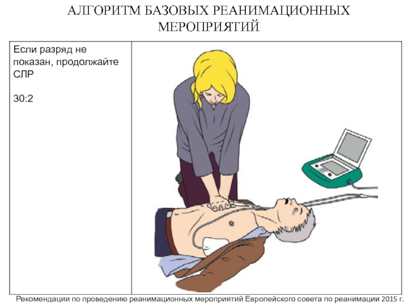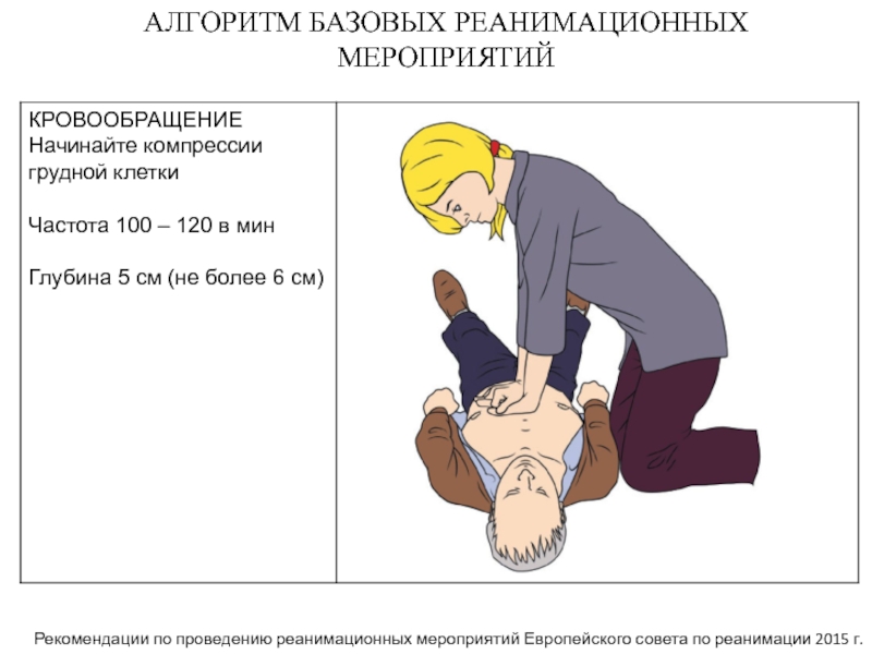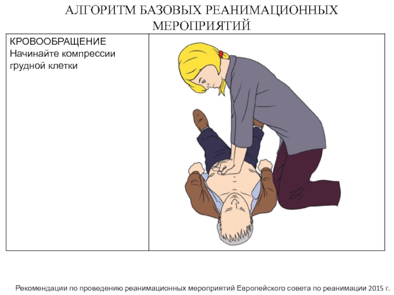 Слайд 15АЛГОРИТМ БАЗОВЫХ РЕАНИМАЦИОННЫХ МЕРОПРИЯТИЙ