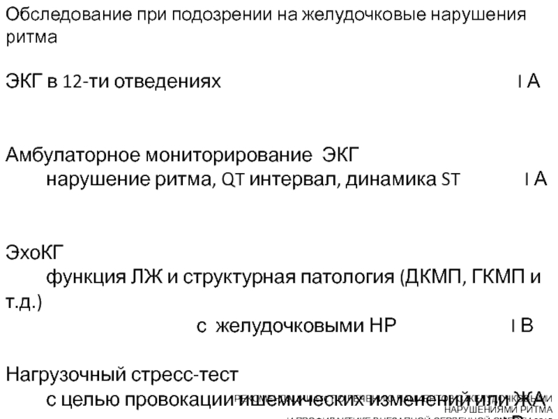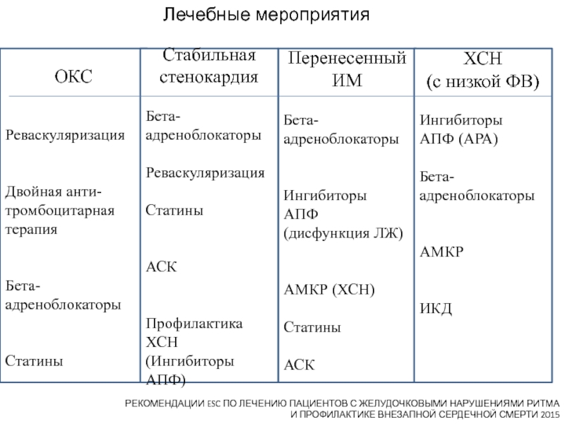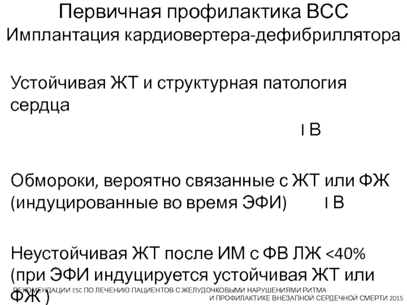 РЕКОМЕНДАЦИИ ESC ПО ЛЕЧЕНИЮ ПАЦИЕНТОВ С ЖЕЛУДОЧКОВЫМИ НАРУШЕНИЯМИ РИТМА