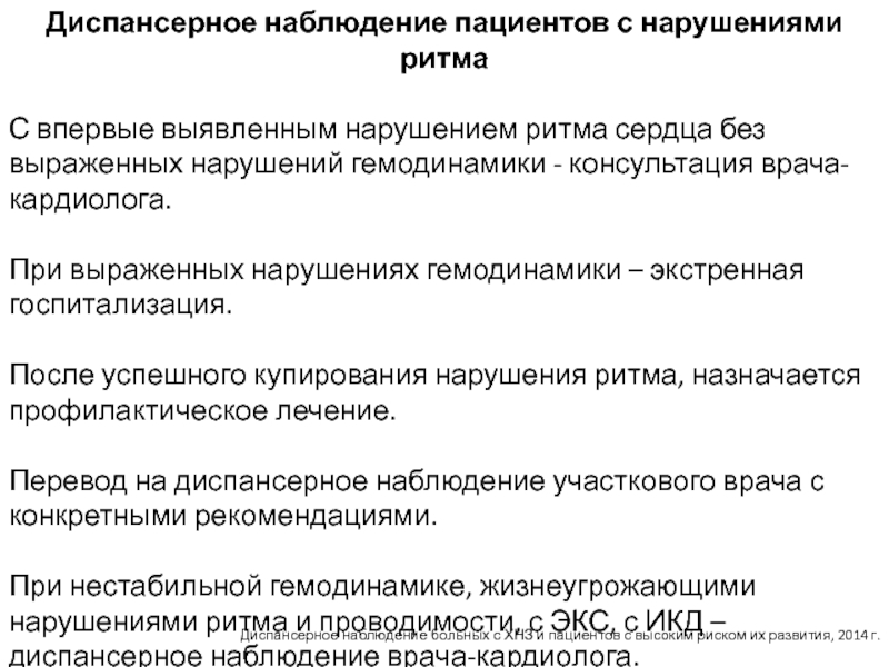 Слайд 66Диспансерное наблюдение пациентов с нарушениями ритма