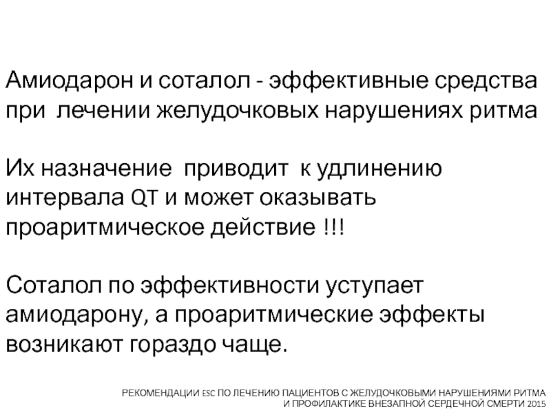 Соталол по эффективности уступает амиодарону, а проаритмические эффекты возникают гораздо чаще.